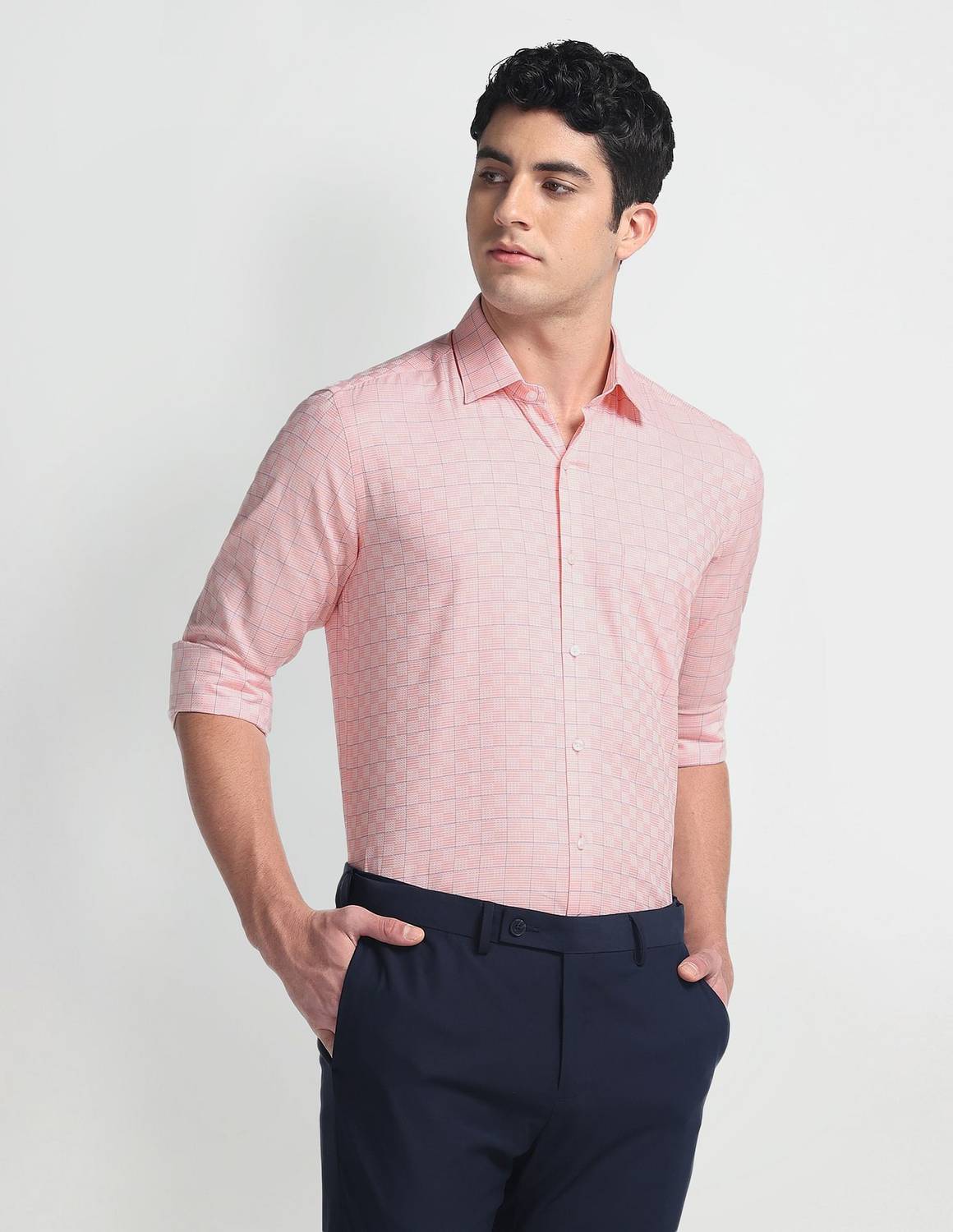 Features - This Full Sleeve Formal Shirt features a classic front, Cutaway Collar, and a well-defined back yoke. A combition of fine tailored Slim Fit along with Dobby weave fabric provides a fitted silhouette. ,Season - Truly comfortable and easy to wear in every season it is insulating in winter and breathable in summer.