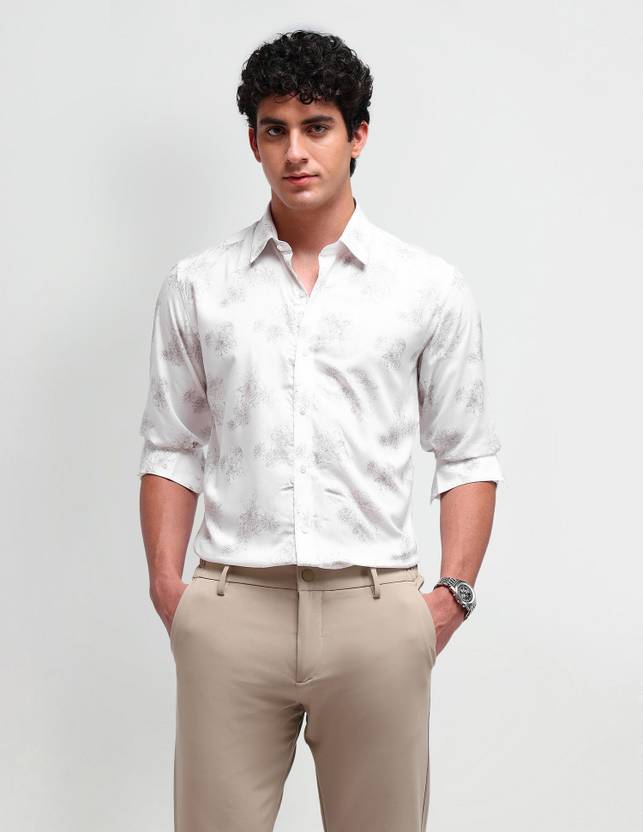 ARROW Men Floral Print Formal White Shirt