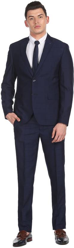 ARROW Men Navy Tailored Regular Fit Check Two Piece Suit Solid Men Suit
