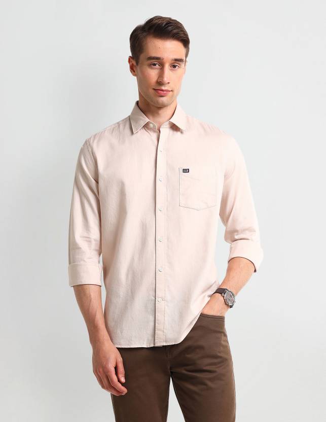 Stay fresh and casual in this peach ARROW shirt. Its solid design and spread collar offer a subtle yet stylish look for any occasion.
