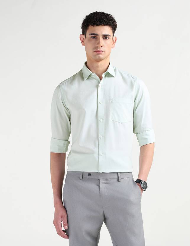Men Slim Fit Solid Cut Away Collar Formal Shirt