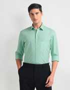 Men Slim Fit Solid Cut Away Collar Formal Shirt