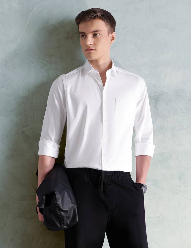 Deceptively simple yet cleverly designed, Arrow's crisp white formal shirt is one of those pieces that inevitably end up in your 'most worn' section. Manufactured from the best quality cotton, the shirt comes with full sleeves and a slightly curved hem.