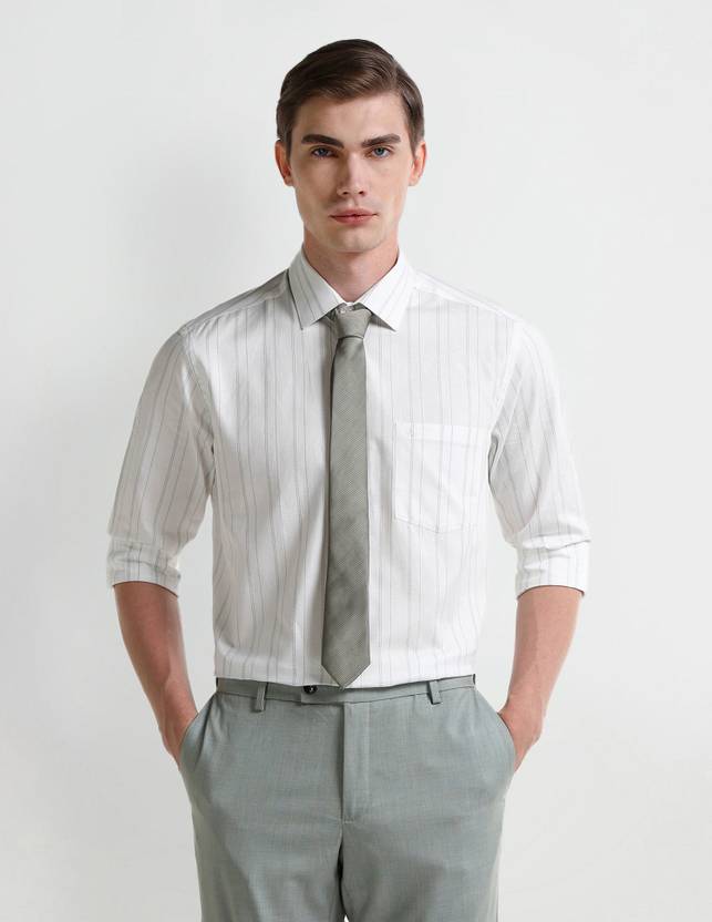 Men's work wardrobe is constantly evolving. Exude professionalism with this classic shirt from arrow in a striped pattern, lt. grey regular fit shirt. Right from the fabric and cut, to the stitching and buttons, whether it's for work or a dinner date, this shirt never fails to impress. To bring out your sharpest personality, pair it with suit trousers and smart shoes. You have what you need to look your best, right here and right now.