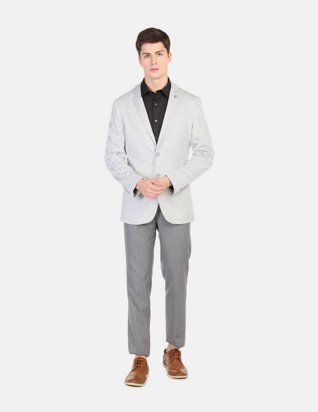 Arrow Newyork Solid Single Breasted Formal Men Blazer (Grey)