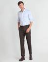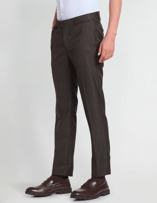 These solid trousers feature a flat front and fine polyester blend fabric that keeps you comfortable.