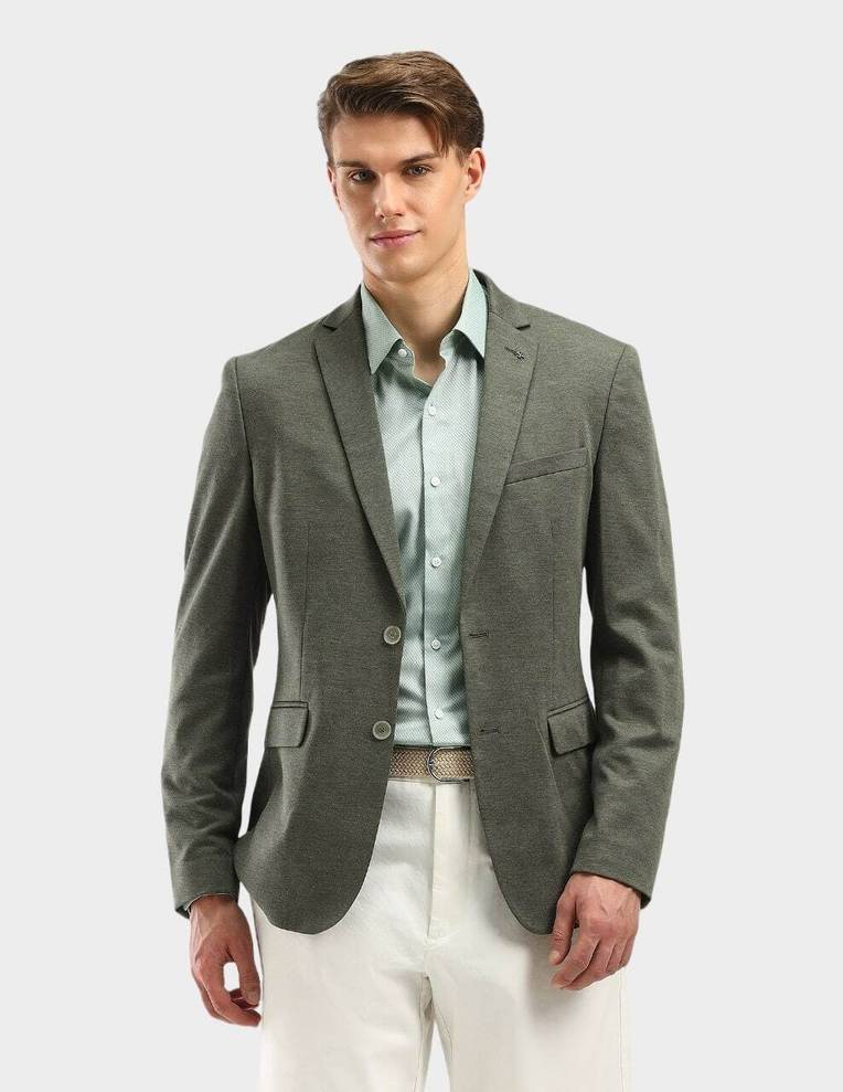 ARROW Self Design Single Breasted Formal Men Blazer (Green)