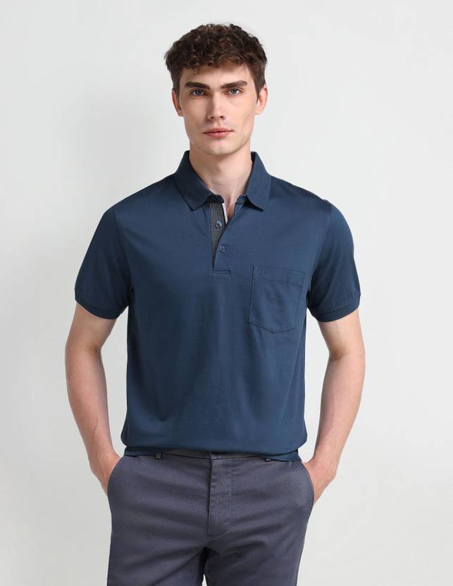 ARROW Solid Men Polo Neck Blue T-Shirt
