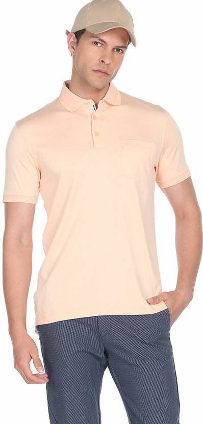 ARROW Solid Men Polo Neck Orange T-Shirt
