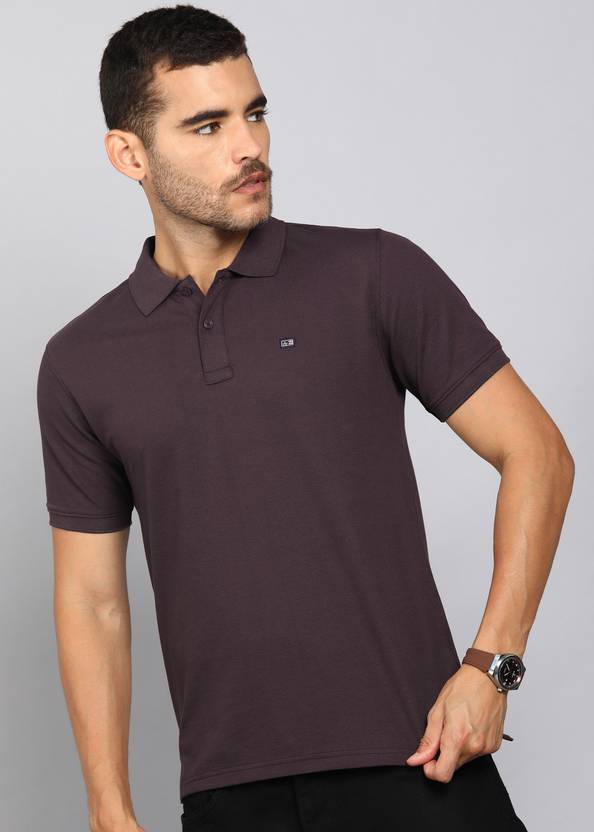 ARROW Solid Men Polo Neck Purple T-Shirt