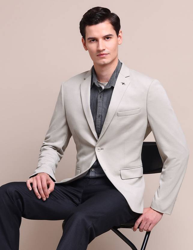 ARROW Solid Single Breasted Casual Men Blazer (Beige)