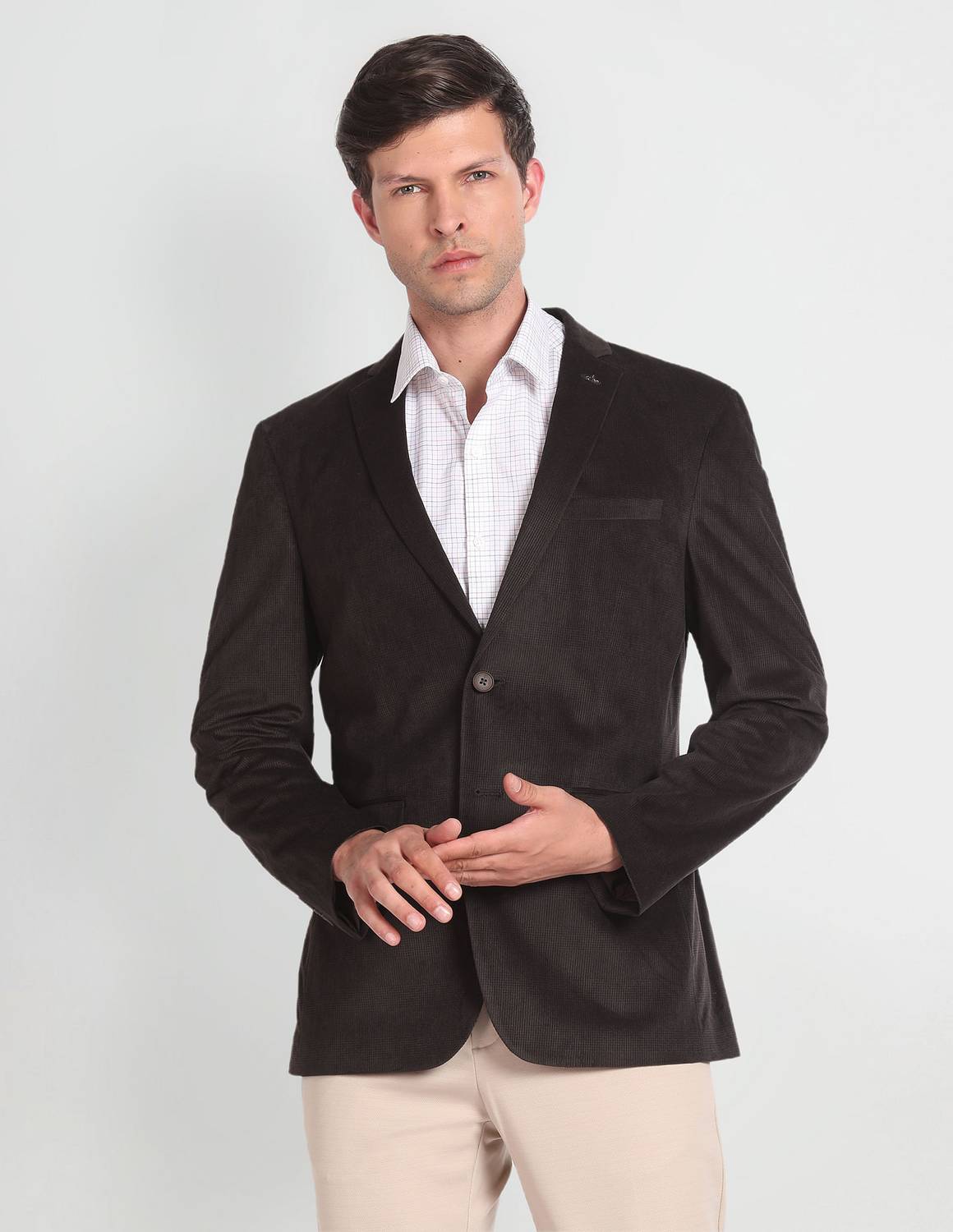 ARROW Solid Single Breasted Formal Men Blazer (Brown)