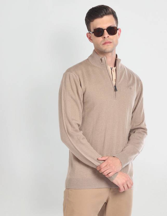 ARROW Solid Turtle Neck Casual Men Brown Sweater
