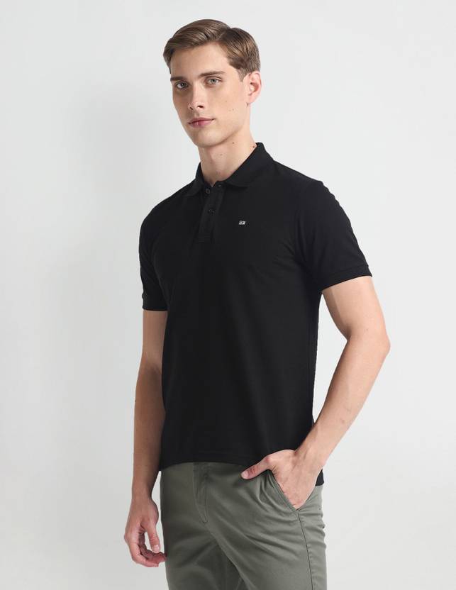 Arrow Sport Solid Men Polo Neck Black T-Shirt