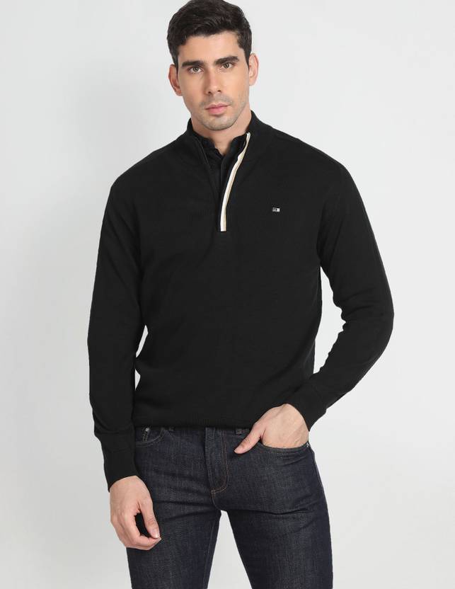 Arrow Sport Solid Turtle Neck Casual Men Black Sweater