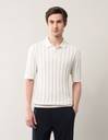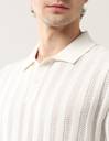 Men Striped Polo Neck Pure Cotton White T-Shirt