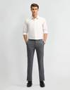 These lt. grey classic trousers are an absolute must-have for your wardrobe. The stretch in the fabric ensures a fit that you can stay comfortable in all day. The classic tailored mid rise trousers feature belt loops that can be teamed up with your desired belt and also pockets for storing those valuable essentials. Style it with a shirt and a matching blazer for a look that delivers! Perfect for job interviews and work meetings.