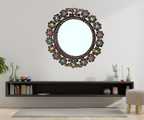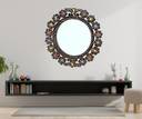 art export Wooden Frame With 4 Hook For Living Room , Bedroom Decorative Mirror (Round Finish : Black)