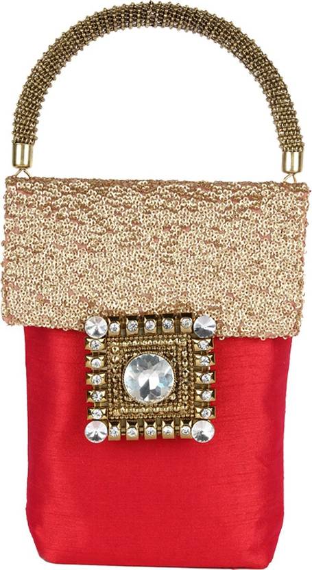 Beautifully Designed Red colour Party Purse made from Sequence and Silk.Being lightweight and spacious these potli bags can easily be wrapped around the wrist using their drawstrings