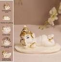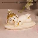 Art Street Resting Ganesha Statue Showpiece Idol. Thoughtfully crafted from high-quality marble, this intricately designed Resting Ganesha murti in a calm white finish represents wisdom, relaxation, and inner peace.
