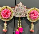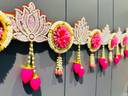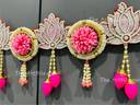 The ArtBlleZon Plastic Beads lotus and artificial flower Door Hanging/Bandarwal/Toran for Door. Toran (Fabric, Beads, Plastic Bell, decoration ring, artificial flower)