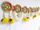 ArtBlleZon Toran (Marigold Flower, Beads, Fabrics, Mirror, White Gajri)