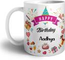 ARTBUG Happy Birthday Aadhya Ceramic Coffee - Best Birthday Gift for Daughter, Sister, Girlfriend, Wife, Color - White, Name -Aadhya Ceramic Coffee Mug  (350 ml)