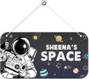 ARTBUG Wooden Astronaut Space Theme Sheena Name Door Sign, Wall Hanging for Kids Room Name Plate (Black)