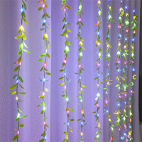 Artificial Leaf Curtain LED String Light, 100 LEDs, 8 Modes, Remote Control 100 LEDs 3 m Multicolor Flickering, Steady String Rice Lights (Pack of 1)
