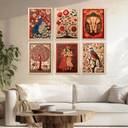 Artifly Set of 6 Framed madhubani art Paintings for Living Room and wall decor P-06 Digital Reprint 13 inch x 10 inch Painting (With Frame, Pack of 6)