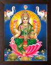 Mata Laxmi Showering Money with Pair of Elephant, HD Printed Picture with Frame.