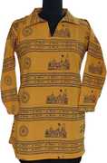 Embrace spiritual elegance with this saffron/orange cotton kurta featuring sacred Hindu iconography. The kurta is adorned with repetitive prints of the Ram Mandir (Ram Temple) along with the sacred text "Jai Shri Ram" (जय श्रीराम) printed in Devanagari script. The design also includes Swastik symbols, which are auspicious signs in Hinduism representing prosperity and good fortune.