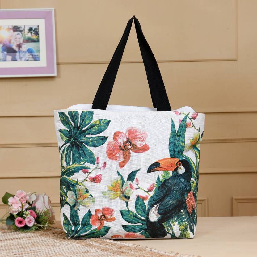 Women Handmade Flower Print Shoulder Tote Handbag with Handle For Multipurpose