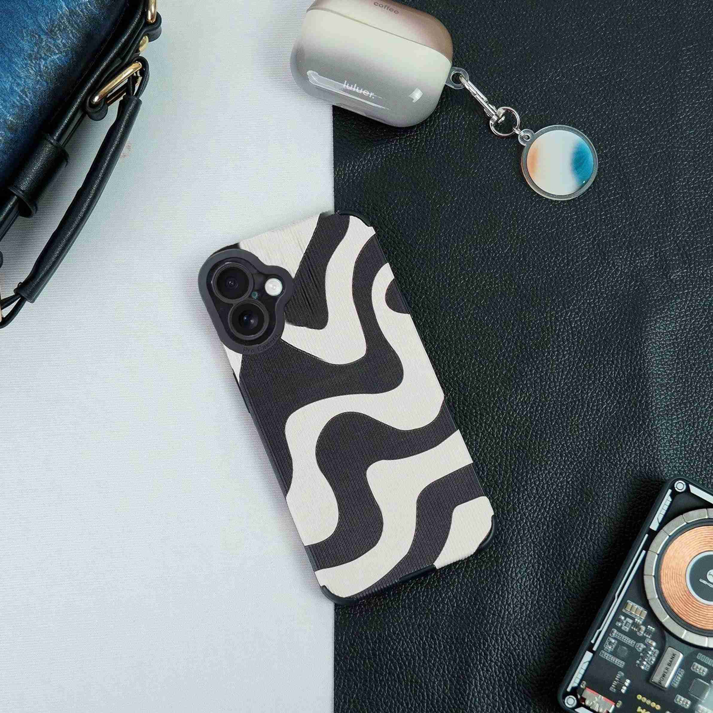 Back Cover for iPhone 16 (Black, White, Flexible, Pack of: 1)