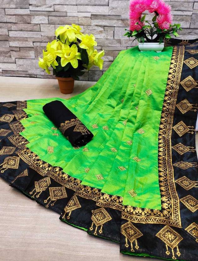 Embroidered Bollywood Cotton Silk Saree (Green)