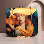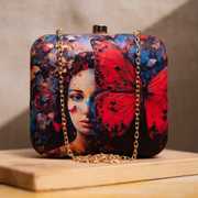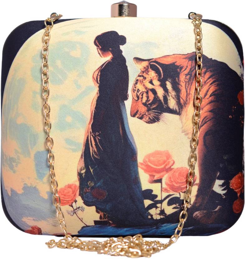 Introducing our elegant and artistic hand clutch for women, featuring a stunning design of a woman with a tiger amidst roses. This unique women purse accessory is perfect for making a bold fashion statement. With its compact size and gold chain strap, it's ideal for carrying your essentials in style. The intricate artwork and quality craftsmanship make this clutch a standout piece for any occasion. Add a touch of sophistication and flair to your outfit with this beautiful clutch.