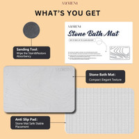 Owing to its compact and elegant texture, this stone bath mat adds a touch of sophistication to your bathroom decor. Thanks to its anti-slip pad, it ensures stability while providing a stylish accent to your space. Made with practicality in mind, you can easily wipe away stains, and with the accompanying sanding tool, restore this mat's absorbency, maintaining both its aesthetic appeal and functionality.