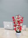 Artsy Artificial Flowers With Pot For Home Decoration, Office Decor Cherry Blossom Maroon, White Cherry Blossom Artificial Flower with Pot (17 inch, Pack of 1, Flower with Basket)