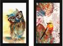 ArtX Owl And Sparrow Birds Set of 2 Framed Wall Paintings For Home Decorative Ink 13 inch x 8.5 inch Painting (With Frame, Pack of 2)
