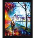 ArtX Romantic Couple Holding Hands Oil Painting Digital Reprint Framed Painting Ink 13.5 inch x 10.5 inch Painting (With Frame)