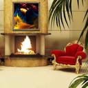 Artzfolio Alien Mountains With Space & A Red Yellow Planet Framed Painting 20x21.2inch Canvas 21.2 inch x 20 inch Painting (With Frame)
