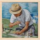 Artzfolio Fisherman & His Fishing Net Canvas Painting Natural Brown Frame 24.3x24inch Canvas 24 inch x 24.3 inch Painting (With Frame)