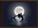 Mermaid Singing At Night Canvas Painting Dark Brown Frame 22.2x16inch (56x41cms)