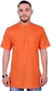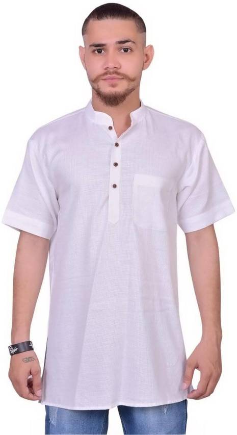 Aruati offers this casual comfortable cotton blend Slim-fit Short kurta, short sleeves, Side slits. This is a great option for any evening event. You can team it with your favourite jeans or trousers. Order According to your garment chest size. M size garment chest measurement = 40 inches, L size garment chest measurement = 42 inches and XL size garment chest measurement = 44 inches respectively.