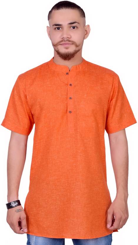 Aruati offers this casual comfortable cotton blend Slim-fit Short kurta, short sleeves, Side slits. This is a great option for any evening event. You can team it with your favourite jeans or trousers. Order According to your garment chest size. M size garment chest measurement = 40 inches, L size garment chest measurement = 42 inches and XL size garment chest measurement = 44 inches respectively.