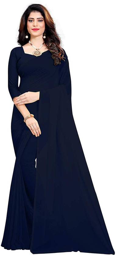Aruna Sarees Solid/Plain Daily Wear Georgette Saree (Dark Blue)