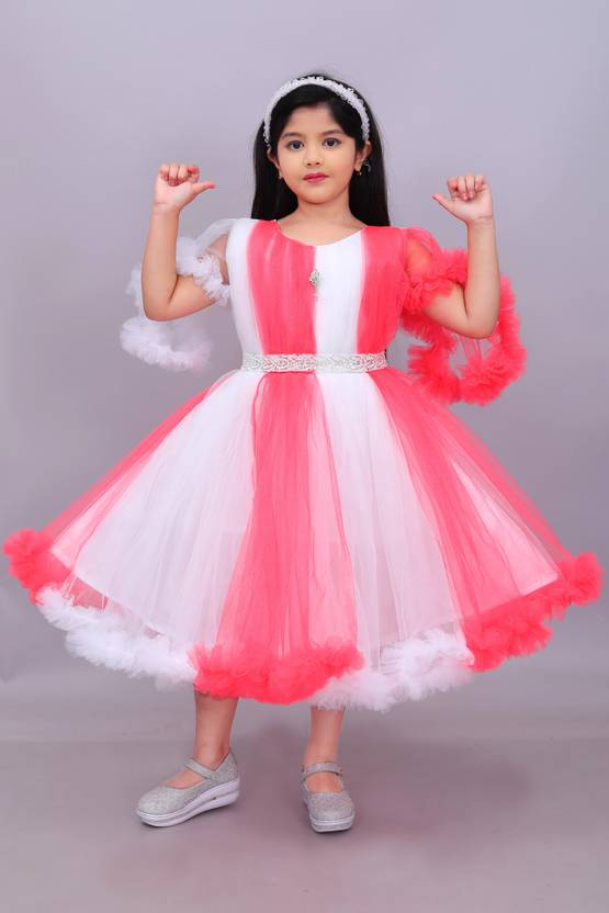 Aruna Trend Girls Below Knee Party Dress (Pink, 3/4 Sleeve)