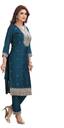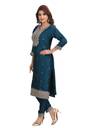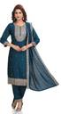 Elegant Teal Blue Embroidered Silk Blend Suit Set. Perfect for festive occasions, family gatherings, or party wear. Beautiful heavy neck embroidery with matching dupatta makes it a must-have ethnic piece."