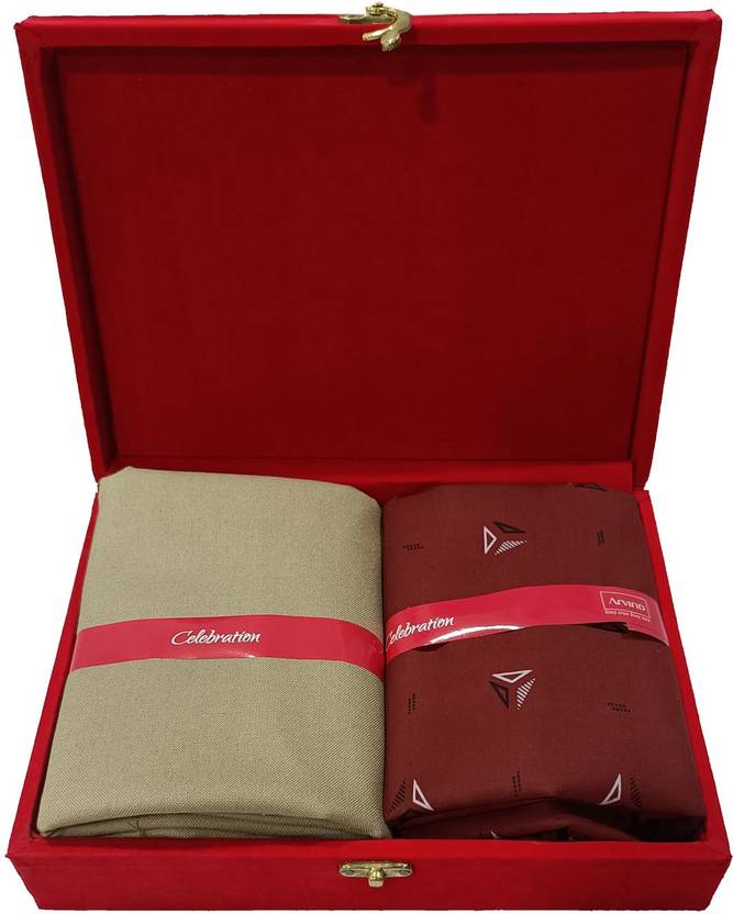 • Attractive Velvet Gift Box Packing • Original arvind Makers Suiting Shirting • Best for gifting in Wedding, New shop opening, Diwali, etc • Stylish ready to stitch shirt and trouser • Fabric : Synthetic Polyblend Viscose • Included components: 1 Shirt Piece + 1 Pant Piece • Length: 1.3 meter (Trouser) + 2.35 meter (Shirt) • Width : 150 Cm (Trouser) + 90 Cm (Shirt) • This shirt and pant combo is made from a fabric suitable for any occasion