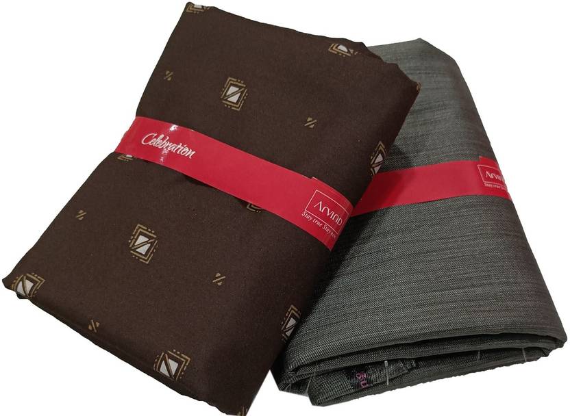 • Attractive Velvet Gift Box Packing • Original arvind Makers Suiting Shirting • Best for gifting in Wedding, New shop opening, Diwali, etc • Stylish ready to stitch shirt and trouser • Fabric : Synthetic Polyblend Viscose • Included components: 1 Shirt Piece + 1 Pant Piece • Length: 1.3 meter (Trouser) + 2.35 meter (Shirt) • Width : 150 Cm (Trouser) + 90 Cm (Shirt) • This shirt and pant combo is made from a fabric suitable for any occasion